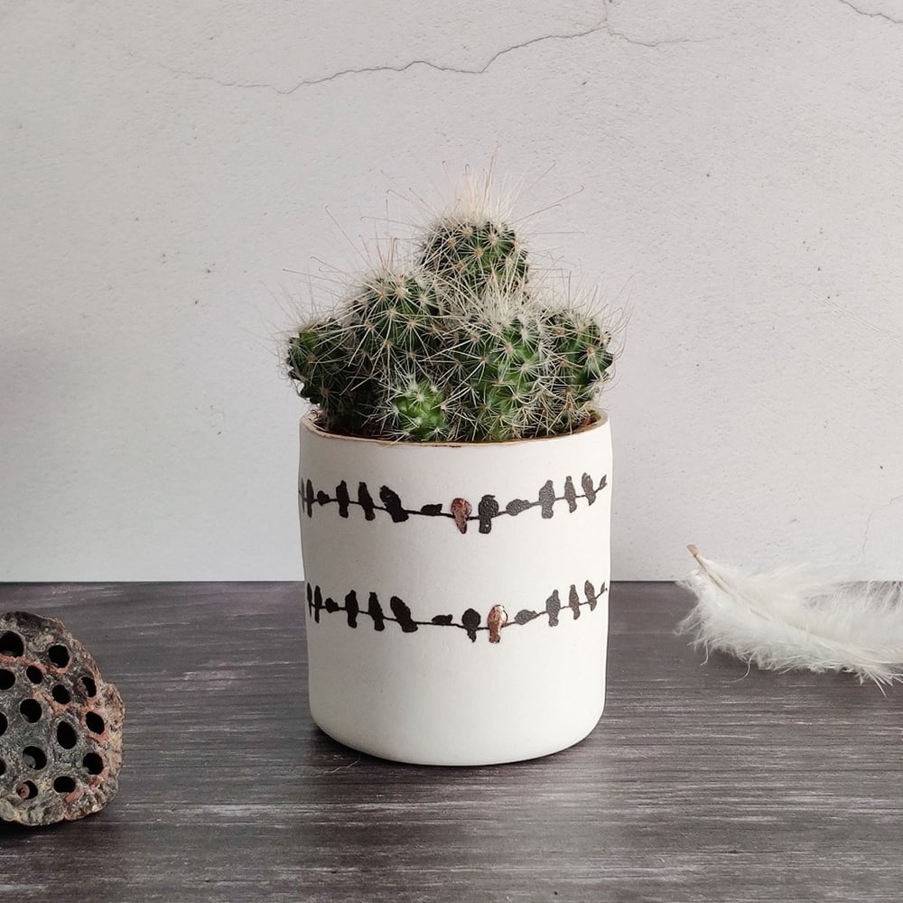 Porcelain birds on a wire small planter