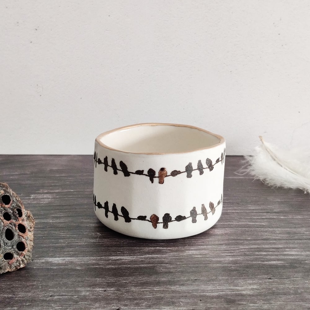 Birds on a wire porcelain tealight pot